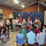 Twee avonden Ongehoord in Elshout. Twee avonden een identiek programma. Maar wel met een eigen intensiteit. En intens was het! Wat hebben we weer een boel gezien en gehoord. Onvermoede klanken, sprookjes, tonpraterij, getatoeëerde armen en borsten, meezingen, meditatie, theater, meeleven en een ode aan Heusden met zo’n 40 musici. De locaties logen er niet om. Van schuren tot tuinen en van een kunstenaarsatelier tot een oude BBA-bus.
